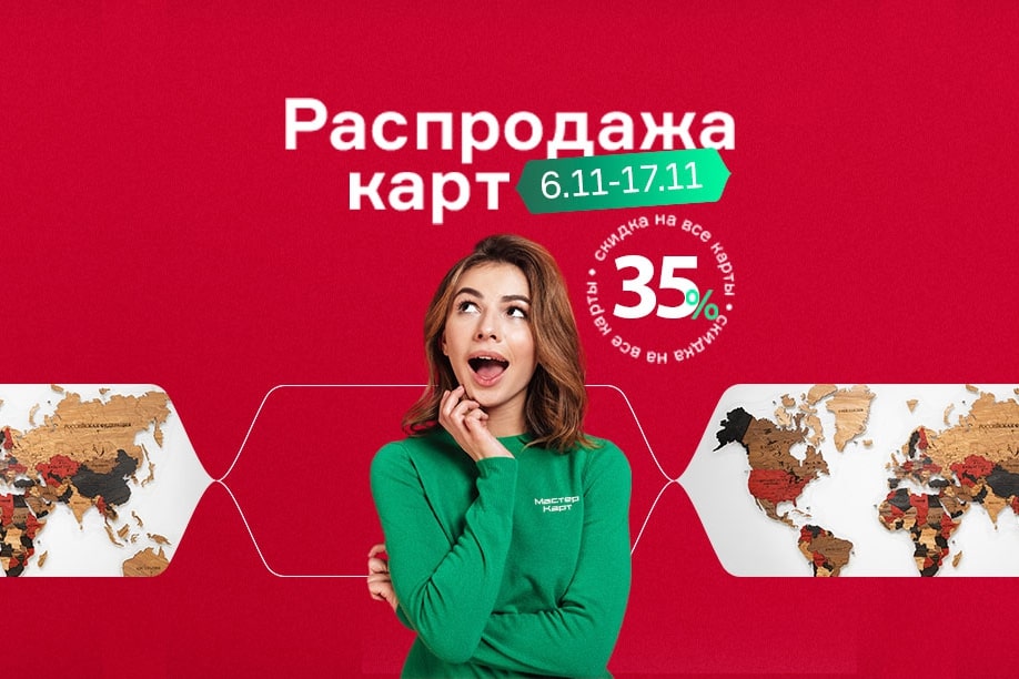 Такого еще не было. Большая распродажа деревянных карт мира и России со скидками до 35%